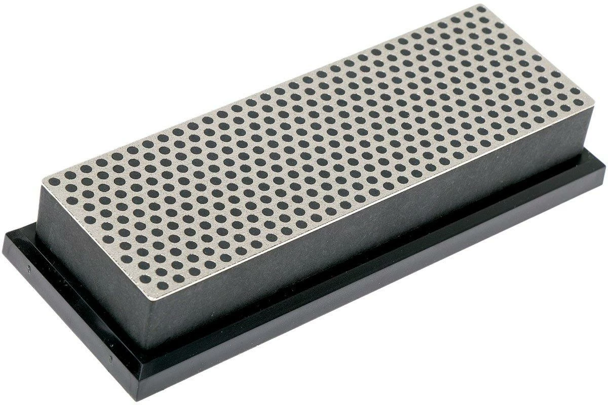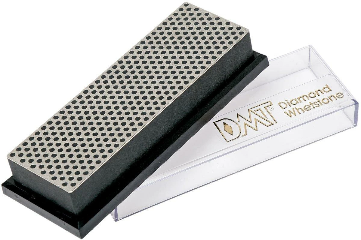 Cette pierre à aiguiser DMT 6’’ possède la surface d’aiguisage diamant au motif à pois caractéristique de DMT. On identifie le grain extra grossier de cette pierre grâce à sa couleur noire. Pour redonner son tranchant rapidement à une lame très émoussée ou endommagée. Cette pierres est livrée dans une boîte de rangement en plastique pourvue de pieds antidérapants.