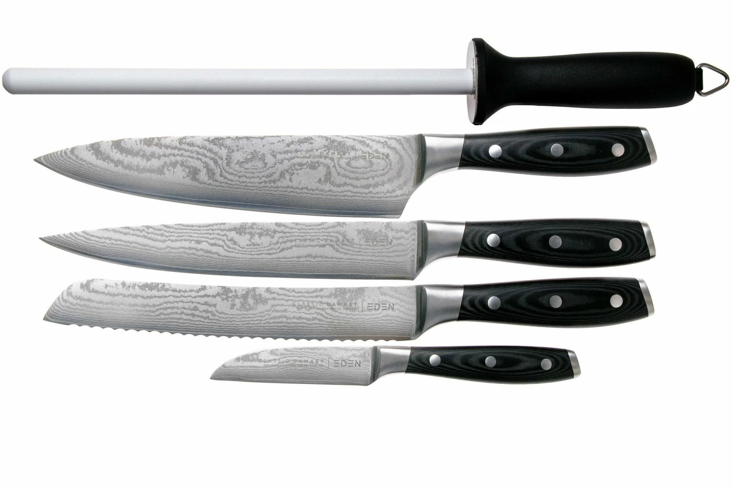 Ce set de couteaux six pièces Eden Classic Damast vous offre un set de démarrage avec tous les couteaux dont vous avez besoin.