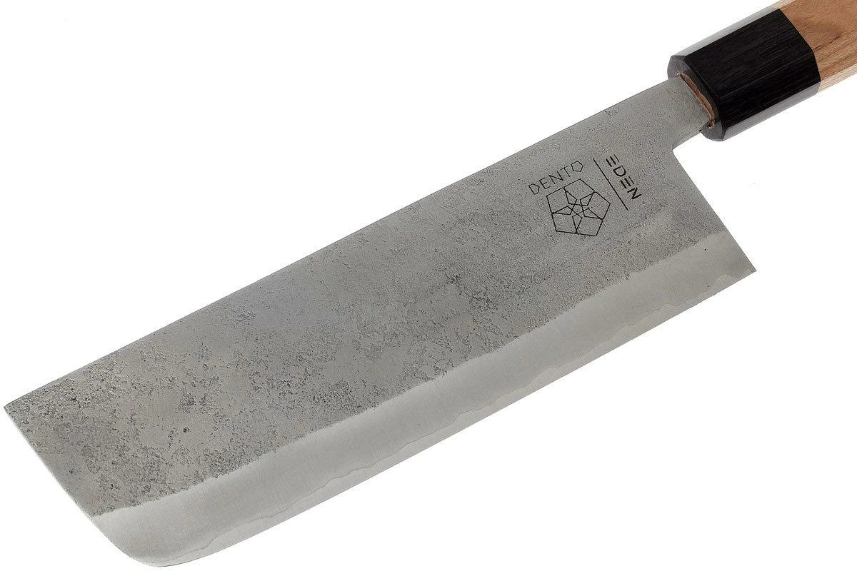 Ce couteau Eden Dento Nakiri est un couteau à légumes idéal, de style japonais. Au Japon, on utilise le nakiri pour couper les légumes avec une grande précision. Le tranchant monte à peine jusqu’à la pointe. Celle-ci est pourtant légèrement arrondie, afin de permettre au couteau de rouler assez facilement sur la planche. Avec son pouvoir de coupe supérieur, ce magnifique couteau est très plaisant à utiliser.