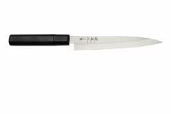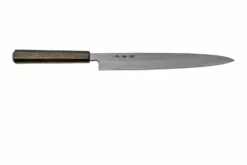 Le yanagiba Sakai Takayuki Blue 2 Steel Japanese Style 01204 est un couteau de cuisine aiguisé d’un seul côté, pour couper des tranches de viande, de poisson ou de légumes. La longueur de la lame permet d’effectuer de longs mouvements de coupe. De quoi préparer des tranches ultra fines de viande, poisson ou légumes. C’est idéal pour les sushis ou les sashimis !