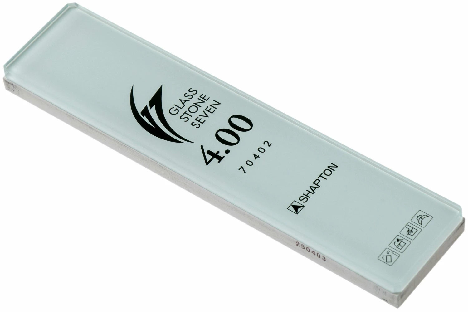 La Shapton Glass Stone Seven 4.00 micron, 70402 est une pierre à aiguiser fine de la gamme Shapton Glass Stone Seven. Sa granulométrie est comparable à celle d’une pierre à eau japonaise de grit 3000, cette pierre est donc essentiellement prévue pour aiguiser des couteaux peu émoussés et non endommagés. Pour aiguiser les couteaux émoussés, on choisira une pierre Glass Stone Seven plus grossière.