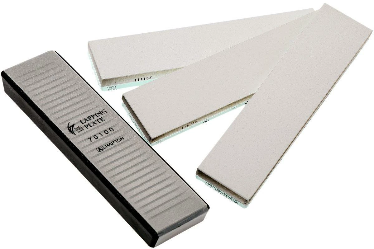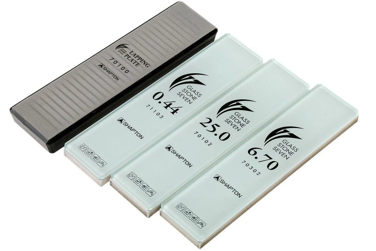 Cet ensemble d’aiguisage Shapton Glass Stone Seven est composé de trois pierres à aiguiser, un support de pierre à aiguiser et d’une pierre à redresser. Emballé dans une très belle boîte de rangement. Cet ensemble d’aiguisage vous permet d’aiguiser et de polir les lames jusqu’à un tranchant ultime. Les pierres sont presque identiques aux Pierres de la gamme Glass Stones. Seul le format est différent. Comme les pierres Glass Stones, ces pierres aiguisent également très rapidement et de façon uniforme. C’est exactement ce qu’on attend d’une pierre à aiguiser de haute qualité.