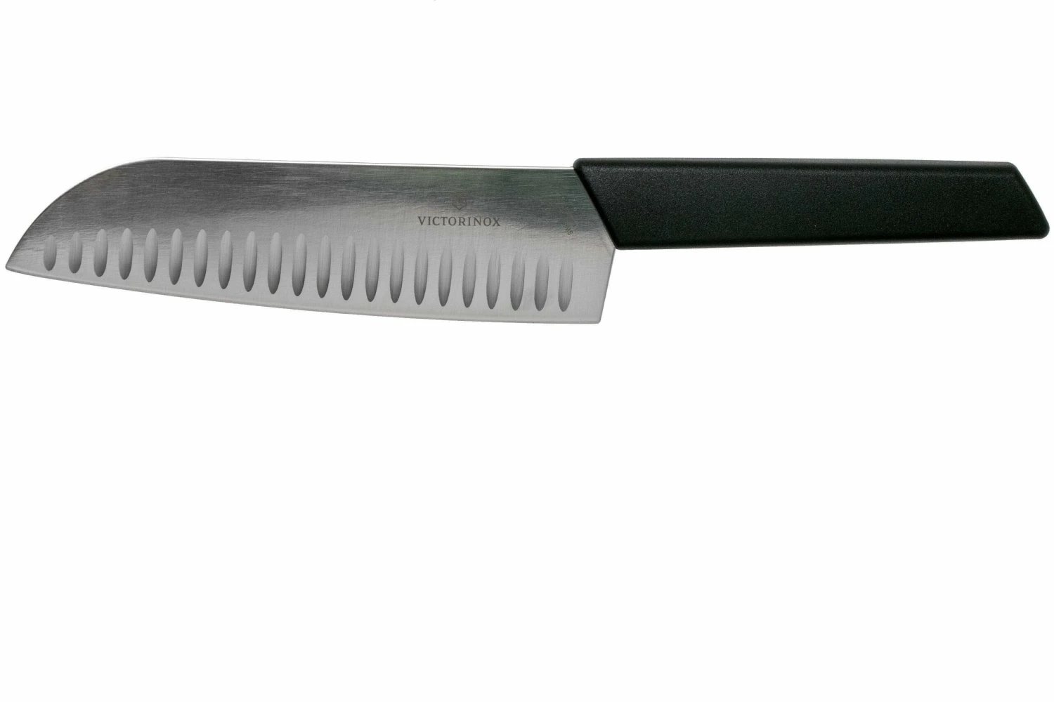 Le couteau santoku Victorinox Swiss Modern est à l’origine un couteau de chef japonais. On utilise ce type de couteau au Japon essentiellement pour préparer les Sushis. On remarque les alvéoles sur la lame. Elles permettent d’éviter aux aliments de coller sur la lame. Ce détail est particulièrement pratique lorsque l’on coupe des tranches. Ce couteau est indispensable dans toute bonne cuisine.