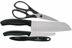 Ce set de couteaux Zwilling Gourmet 3 pièces comprend un couteau de chef 20 cm,un couteau à trancher 16 cm et un couteau d’office 10 cm. Le couteau d’office est parfait pour toutes les petites coupes de légumes et fruits et pour la préparation de la viande et du poisson. Le couteau à trancher permet de couper la viande sans effort. Le couteau de chef est utilisé pour presque tout. Pour couper la viande, le poisson, les fruits et les légumes. En bref, un vrai polyvalent. Ces couteaux font partie de la gamme Zwilling Gourmet. Une large gamme de couteaux de cuisine avec un design classique à trois rivets.